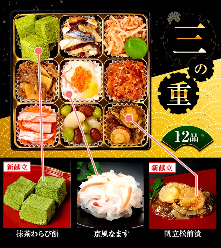 毎年予約殺到の和三段重、おせち「結」