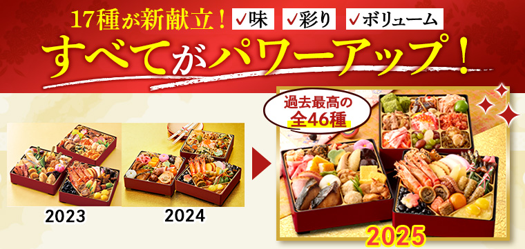 2025年のおせち「結」は、味はもちろん、彩りやボリュームもパワーアップ!